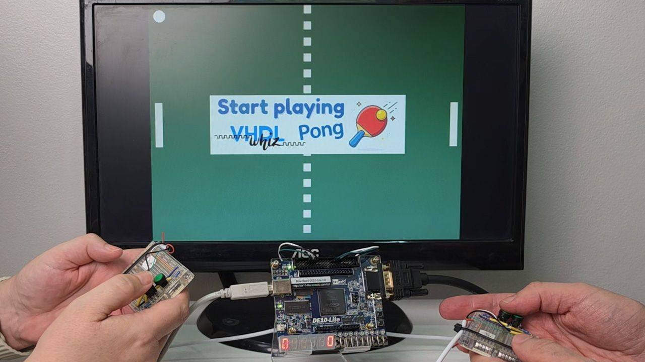 VHDL Pong game implementation course teaching how to control a VGA monitor from an FPGA.